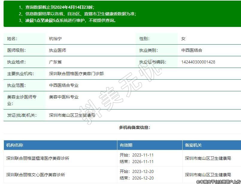 主要執(zhí)業(yè)機(jī)構(gòu):深圳聯(lián)合麗格醫(yī)療美容門診部