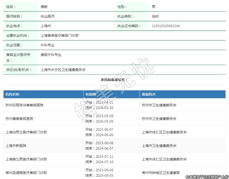 主要執(zhí)業(yè)機(jī)構(gòu):上海美萊醫(yī)療美容門診部