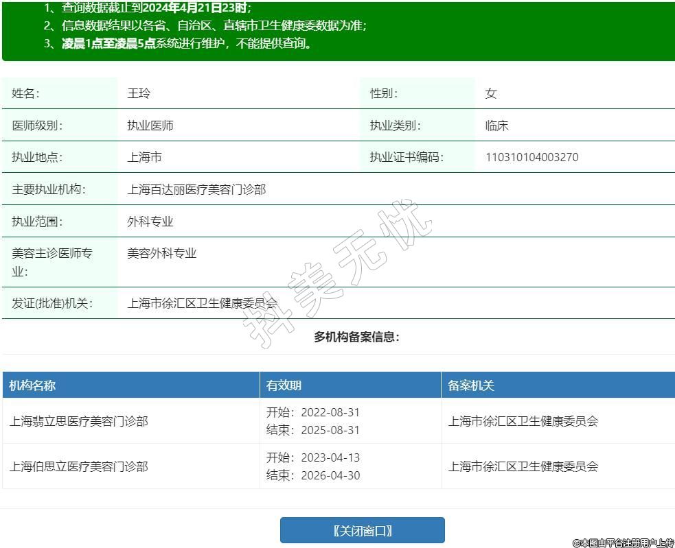 主要執(zhí)業(yè)機構:上海百達麗醫(yī)療美容門診部