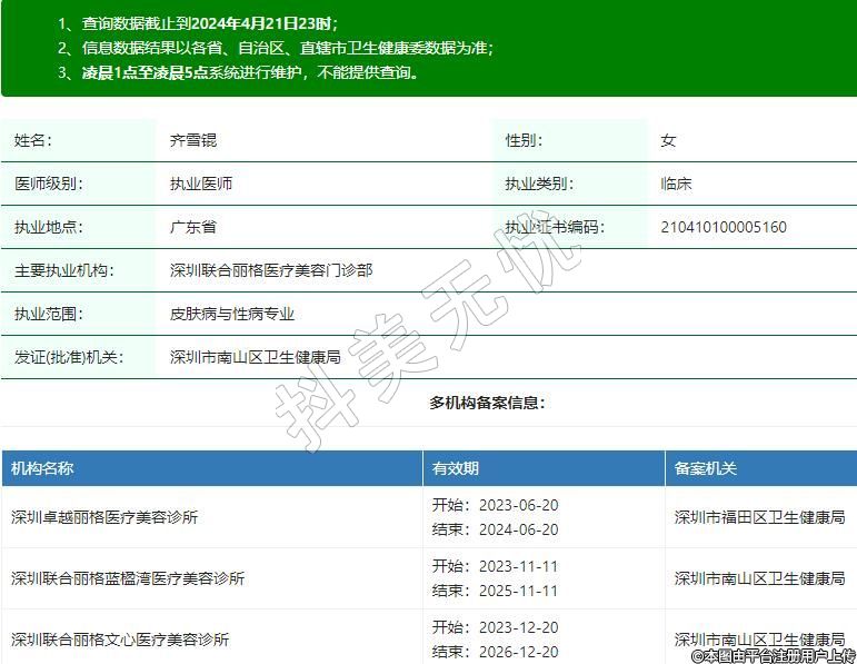 主要執(zhí)業(yè)機構:深圳聯(lián)合麗格醫(yī)療美容門診部