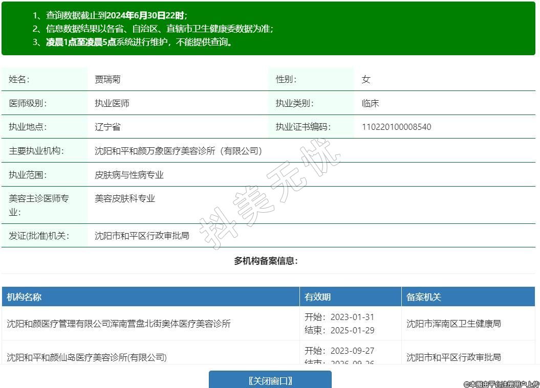 主要執(zhí)業(yè)機(jī)構(gòu):沈陽和平和顏萬象醫(yī)療美容診所(有限公司)