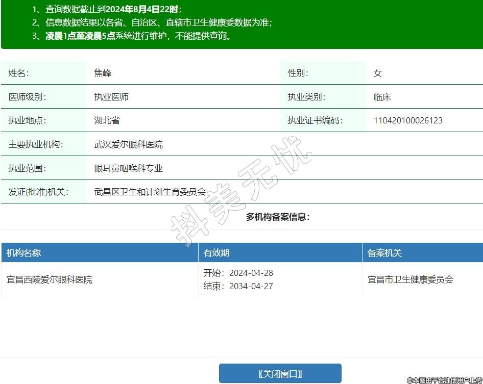 主要執(zhí)業(yè)機(jī)構(gòu):武漢愛爾眼科醫(yī)院