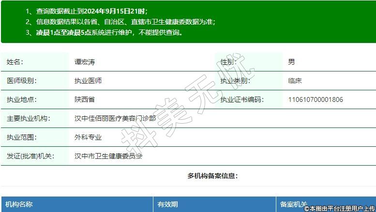 主要執(zhí)業(yè)機構:漢中佳佰麗醫(yī)療美容門診部