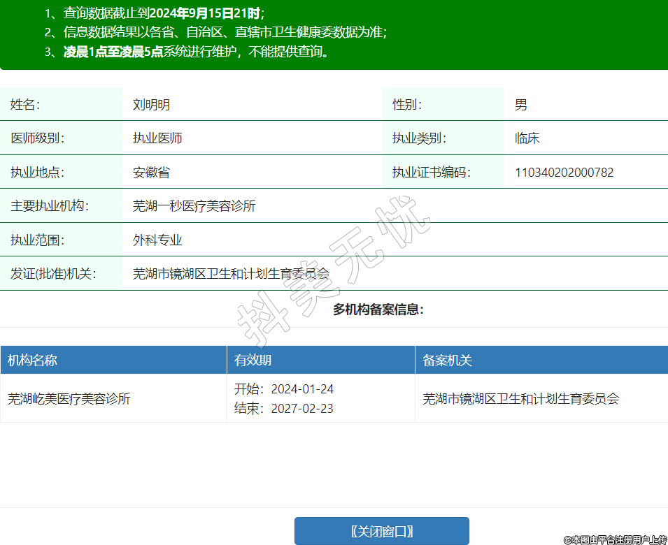 主要執(zhí)業(yè)機構:蕪湖一秒醫(yī)療美容診所