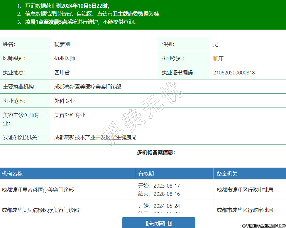 主要執(zhí)業(yè)機(jī)構(gòu):成都高新置美醫(yī)療美容門(mén)診部