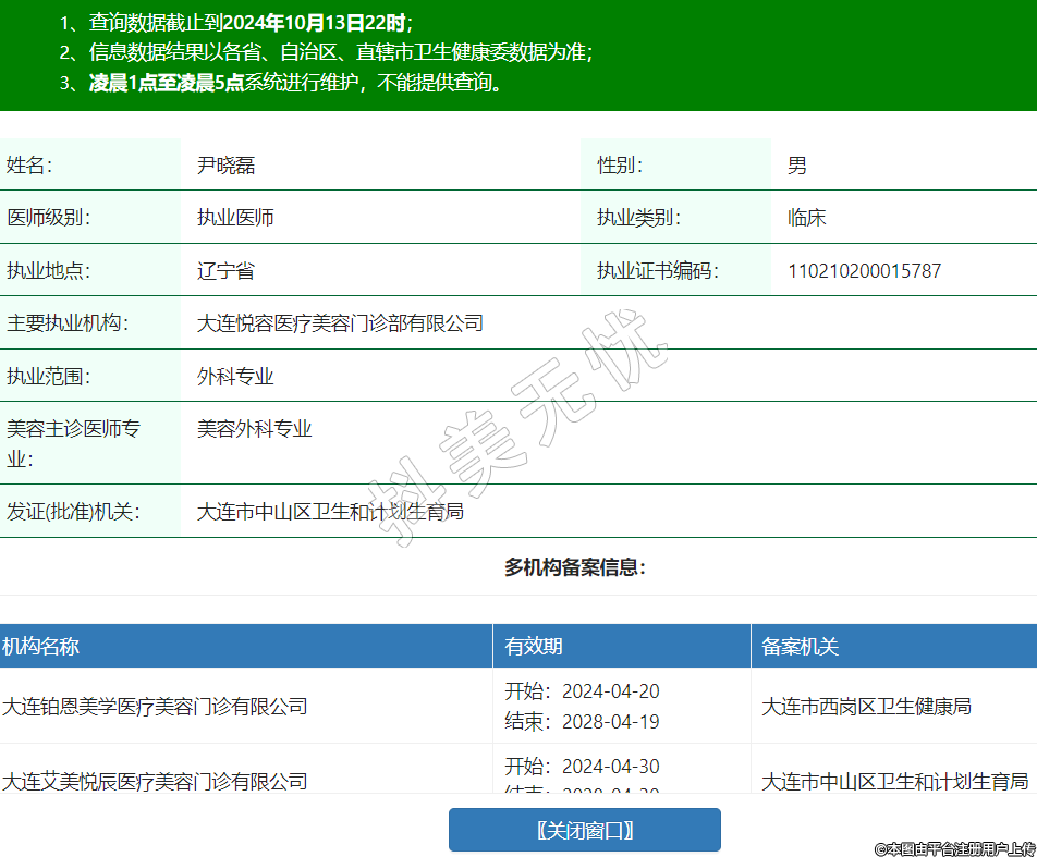 主要執(zhí)業(yè)機(jī)構(gòu):大連悅?cè)葆t(yī)療美容門診部有限公司