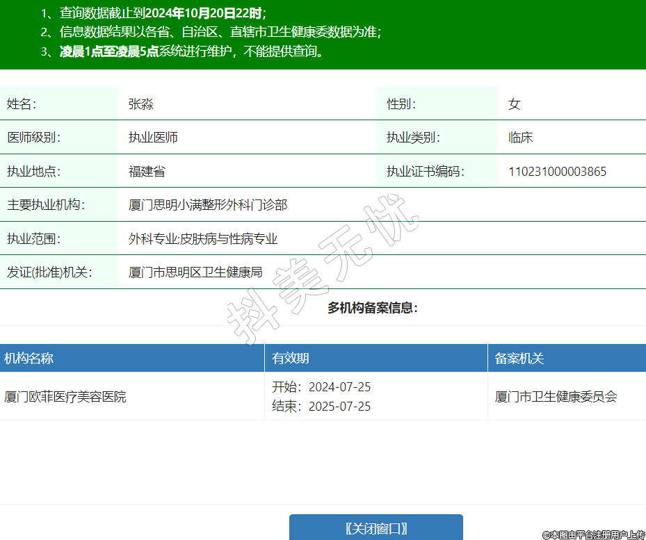 主要執(zhí)業(yè)機(jī)構(gòu):廈門思明小滿整形外科門診部