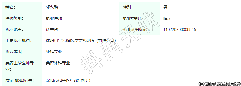主要執(zhí)業(yè)機(jī)構(gòu):沈陽和平名暄醫(yī)療美容診所(有限公司)
