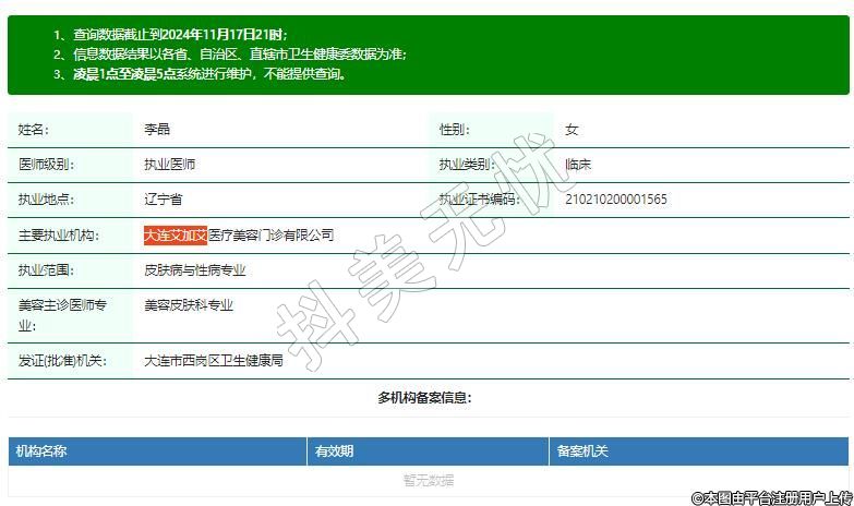 主要執(zhí)業(yè)機構(gòu):大連艾加艾醫(yī)療美容門診有限公司