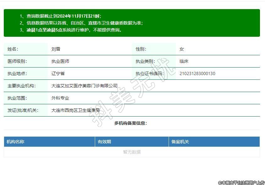 主要執(zhí)業(yè)機(jī)構(gòu):大連艾加艾醫(yī)療美容門診有限公司