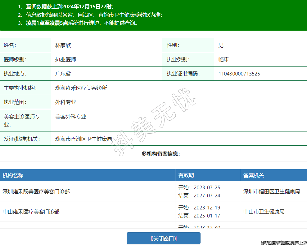 主要執(zhí)業(yè)機構(gòu):珠海雍禾醫(yī)療美容診所