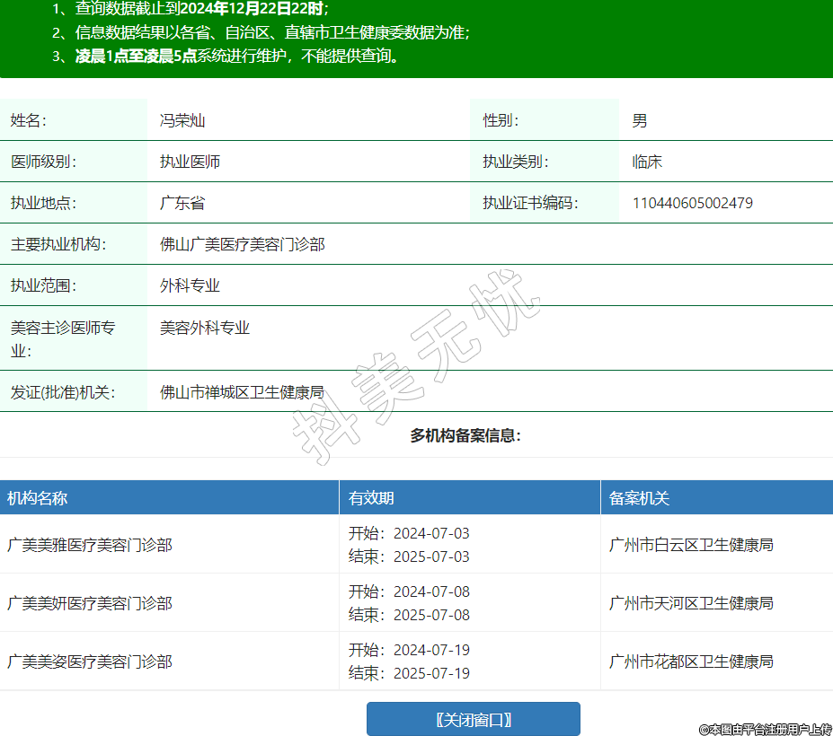 主要執(zhí)業(yè)機(jī)構(gòu):佛山廣美醫(yī)療美容門診部