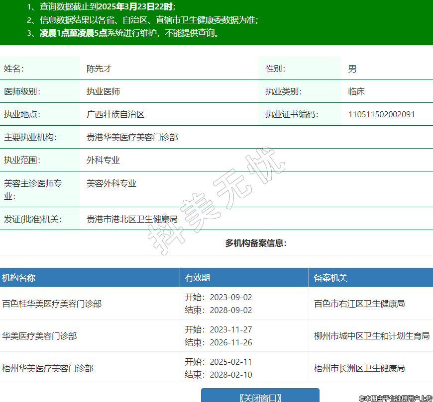 主要執(zhí)業(yè)機構(gòu):貴港華美醫(yī)療美容門診部