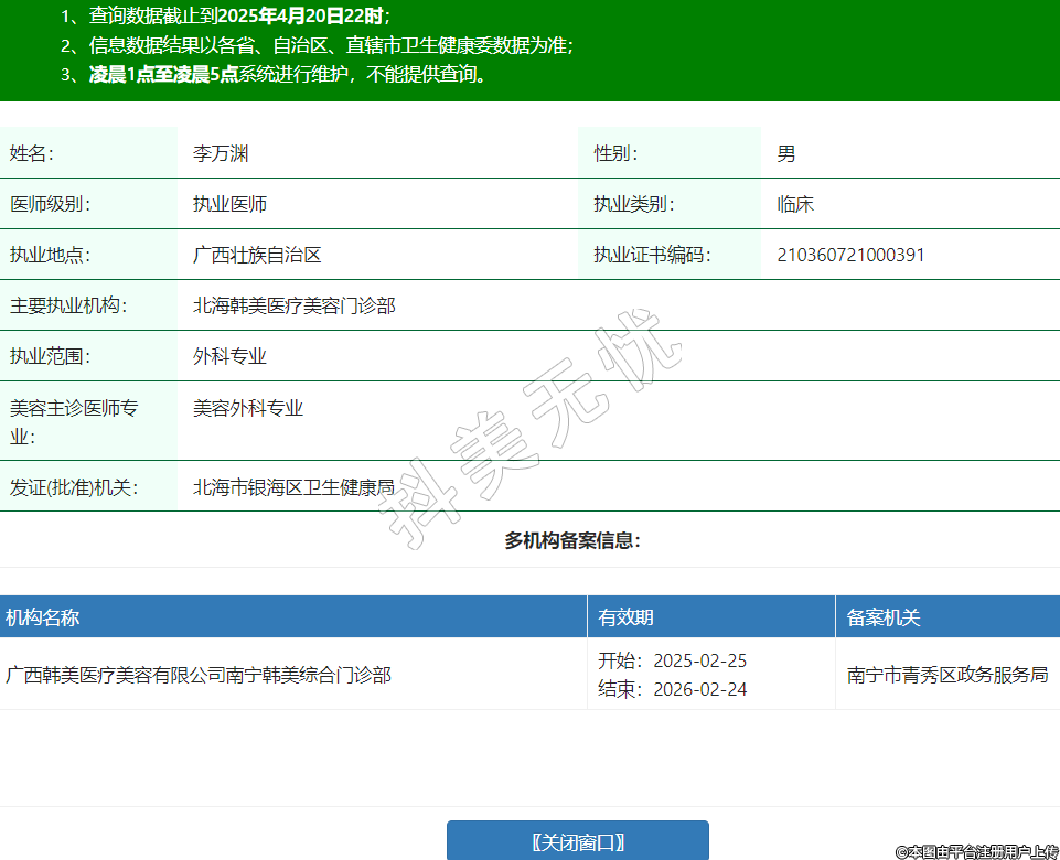 主要執(zhí)業(yè)機(jī)構(gòu):北海韓美醫(yī)療美容門(mén)診部
