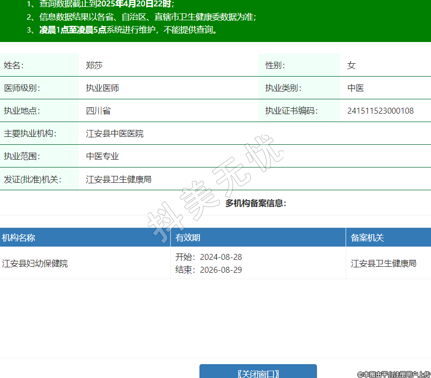 姓名:鄭莎性別:女醫(yī)師級(jí)別:執(zhí)業(yè)醫(yī)師執(zhí)業(yè)類別:中醫(yī)執(zhí)業(yè)地點(diǎn):四川省執(zhí)業(yè)證書編碼:241511523000108主要執(zhí)業(yè)機(jī)構(gòu):江安縣中醫(yī)醫(yī)院執(zhí)業(yè)范圍:中醫(yī)專業(yè)發(fā)證(批準(zhǔn))機(jī)關(guān):江安縣衛(wèi)生健康局多機(jī)構(gòu)備案信息:機(jī)構(gòu)名稱 有效期 備案機(jī)關(guān) 江安縣婦幼保健院 開始:2024-08-28結(jié)束:2026-08-29江安縣衛(wèi)生健康局 -