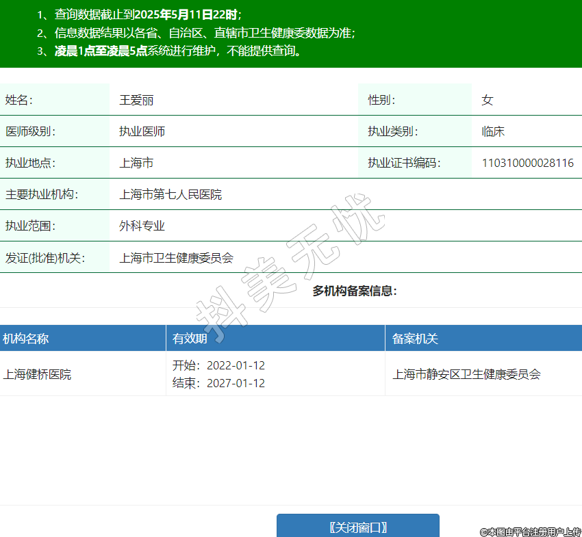 姓名:王愛麗性別:女醫(yī)師級(jí)別:執(zhí)業(yè)醫(yī)師執(zhí)業(yè)類別:臨床執(zhí)業(yè)地點(diǎn):上海市執(zhí)業(yè)證書編碼:110310000028116主要執(zhí)業(yè)機(jī)構(gòu):上海市第七人民醫(yī)院執(zhí)業(yè)范圍:外科專業(yè)發(fā)證(批準(zhǔn))機(jī)關(guān):上海市衛(wèi)生健康委員會(huì)多機(jī)構(gòu)備案信息:機(jī)構(gòu)名稱 有效期 備案機(jī)關(guān) 上海健橋醫(yī)院 開始:2022-01-12結(jié)束:2027-01-12上海市靜安區(qū)衛(wèi)生健康委員會(huì) -