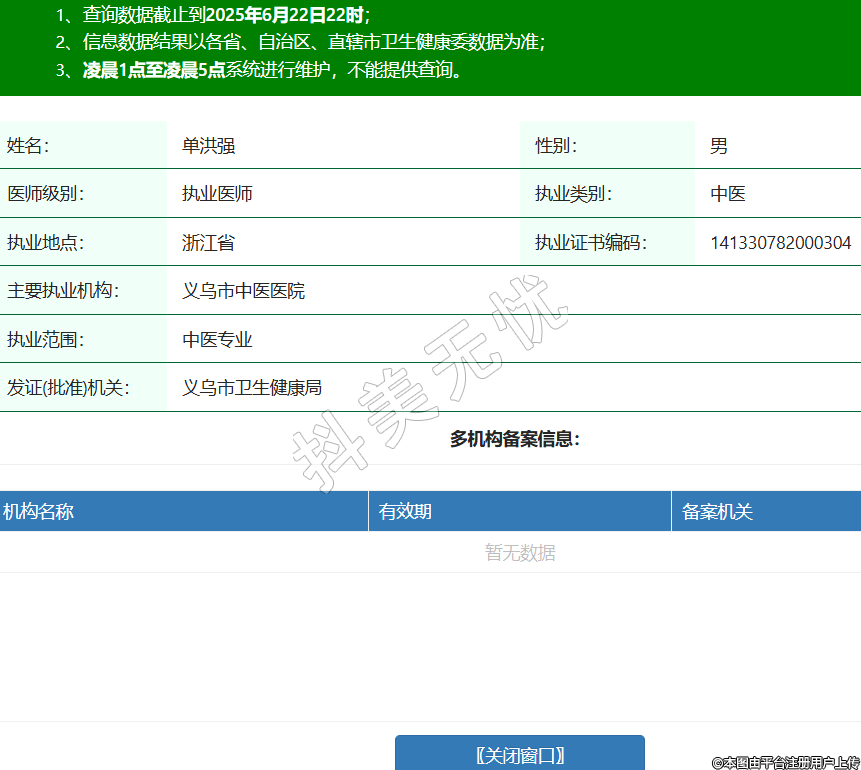 姓名:單洪強(qiáng)性別:男醫(yī)師級(jí)別:執(zhí)業(yè)醫(yī)師執(zhí)業(yè)類別:中醫(yī)執(zhí)業(yè)地點(diǎn):浙江省執(zhí)業(yè)證書編碼:141330782000304主要執(zhí)業(yè)機(jī)構(gòu):義烏市中醫(yī)醫(yī)院執(zhí)業(yè)范圍:中醫(yī)專業(yè)發(fā)證(批準(zhǔn))機(jī)關(guān):義烏市衛(wèi)生健康局 -