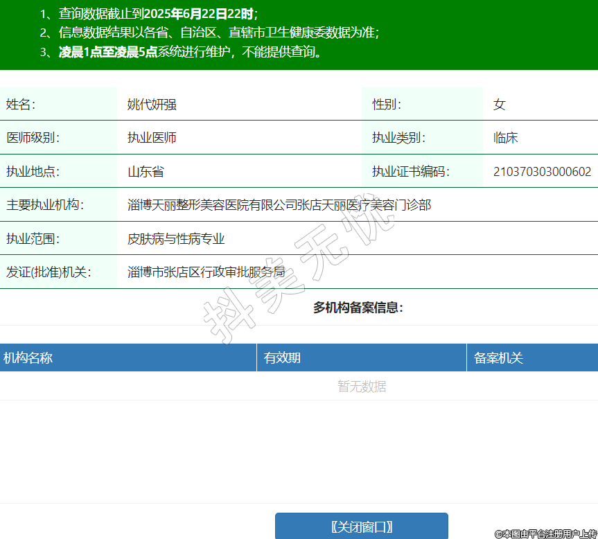 姓名:姚代妍強(qiáng)性別:女醫(yī)師級(jí)別:執(zhí)業(yè)醫(yī)師執(zhí)業(yè)類別:臨床執(zhí)業(yè)地點(diǎn):山東省執(zhí)業(yè)證書編碼:210370303000602主要執(zhí)業(yè)機(jī)構(gòu):淄博天麗整形美容醫(yī)院有限公司張店天麗醫(yī)療美容門診部執(zhí)業(yè)范圍:皮膚病與性病專業(yè)發(fā)證(批準(zhǔn))機(jī)關(guān):淄博市張店區(qū)行政審批服務(wù)局 -