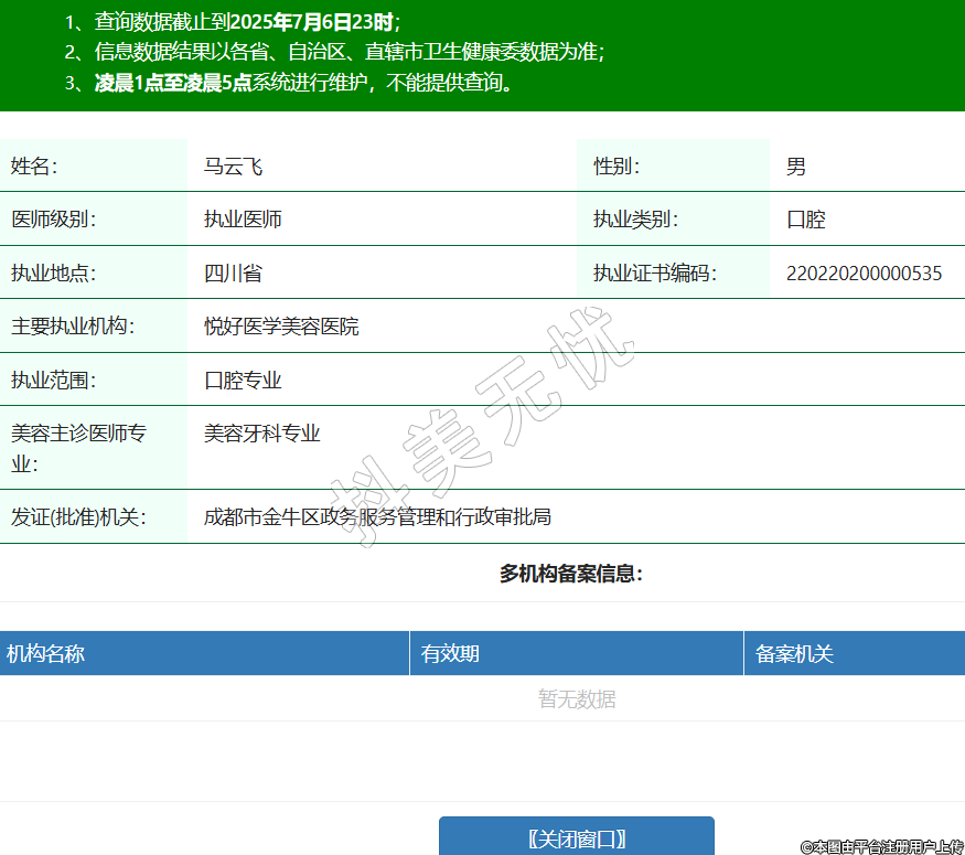 姓名:馬云飛性別:男醫(yī)師級別:執(zhí)業(yè)醫(yī)師執(zhí)業(yè)類別:口腔執(zhí)業(yè)地點:四川省執(zhí)業(yè)證書編碼:220220200000535主要執(zhí)業(yè)機構:悅好醫(yī)學美容醫(yī)院執(zhí)業(yè)范圍:口腔專業(yè)美容主診醫(yī)師專業(yè):美容牙科專業(yè)發(fā)證(批準)機關:成都市金牛區(qū)政務服務管理和行政審批局 -