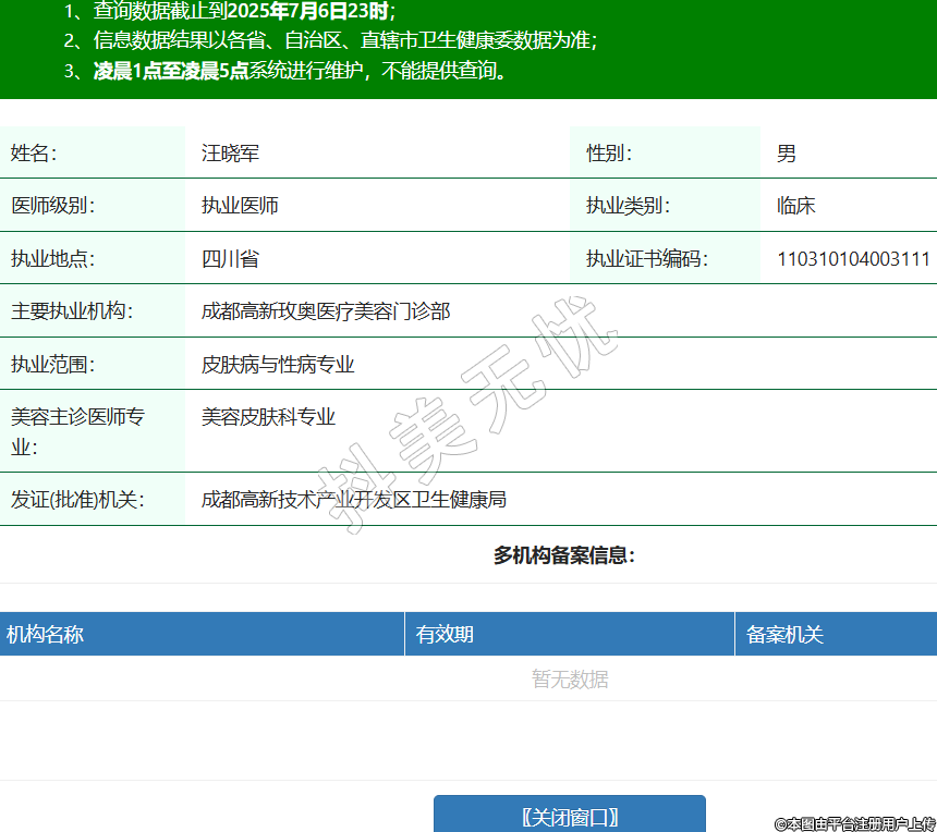 姓名:汪曉軍性別:男醫(yī)師級別:執(zhí)業(yè)醫(yī)師執(zhí)業(yè)類別:臨床執(zhí)業(yè)地點:四川省執(zhí)業(yè)證書編碼:110310104003111主要執(zhí)業(yè)機構(gòu):成都高新玫奧醫(yī)療美容門診部執(zhí)業(yè)范圍:皮膚病與性病專業(yè)美容主診醫(yī)師專業(yè):美容皮膚科專業(yè)發(fā)證(批準(zhǔn))機關(guān):成都高新技術(shù)產(chǎn)業(yè)開發(fā)區(qū)衛(wèi)生健康局 -
