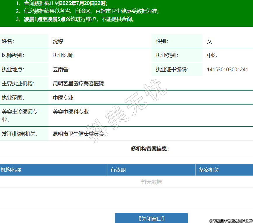 姓名:沈婷性別:女醫(yī)師級(jí)別:執(zhí)業(yè)醫(yī)師執(zhí)業(yè)類別:中醫(yī)執(zhí)業(yè)地點(diǎn):云南省執(zhí)業(yè)證書(shū)編碼:141530103001241主要執(zhí)業(yè)機(jī)構(gòu):昆明藝星醫(yī)療美容醫(yī)院執(zhí)業(yè)范圍:中醫(yī)專業(yè)美容主診醫(yī)師專業(yè):美容中醫(yī)科專業(yè)發(fā)證(批準(zhǔn))機(jī)關(guān):昆明市衛(wèi)生健康委員會(huì) -