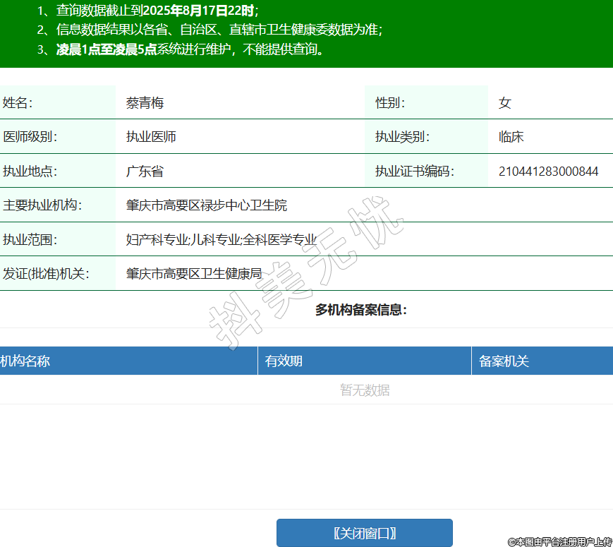 姓名:蔡青梅性別:女醫(yī)師級(jí)別:執(zhí)業(yè)醫(yī)師執(zhí)業(yè)類別:臨床執(zhí)業(yè)地點(diǎn):廣東省執(zhí)業(yè)證書編碼:210441283000844主要執(zhí)業(yè)機(jī)構(gòu):肇慶市高要區(qū)祿步中心衛(wèi)生院執(zhí)業(yè)范圍:婦產(chǎn)科專業(yè);兒科專業(yè);全科醫(yī)學(xué)專業(yè)發(fā)證(批準(zhǔn))機(jī)關(guān):肇慶市高要區(qū)衛(wèi)生健康局 -