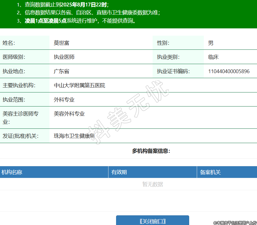 姓名:莫世富性別:男醫(yī)師級別:執(zhí)業(yè)醫(yī)師執(zhí)業(yè)類別:臨床執(zhí)業(yè)地點:廣東省執(zhí)業(yè)證書編碼:110440400005896主要執(zhí)業(yè)機構:中山大學附屬第五醫(yī)院執(zhí)業(yè)范圍:外科專業(yè)美容主診醫(yī)師專業(yè):美容外科專業(yè)發(fā)證(批準)機關:珠海市衛(wèi)生健康局 -