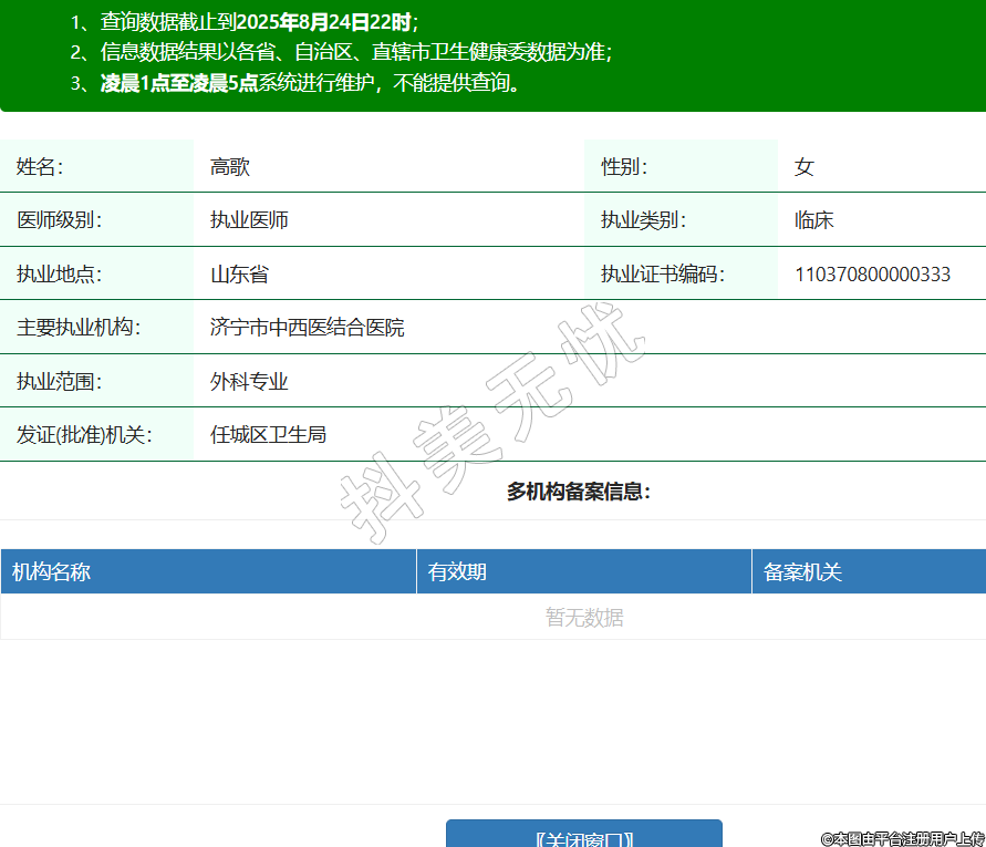 姓名:高歌性別:女醫(yī)師級(jí)別:執(zhí)業(yè)醫(yī)師執(zhí)業(yè)類別:臨床執(zhí)業(yè)地點(diǎn):山東省執(zhí)業(yè)證書編碼:110370800000333主要執(zhí)業(yè)機(jī)構(gòu):濟(jì)寧市中西醫(yī)結(jié)合醫(yī)院執(zhí)業(yè)范圍:外科專業(yè)發(fā)證(批準(zhǔn))機(jī)關(guān):任城區(qū)衛(wèi)生局 -