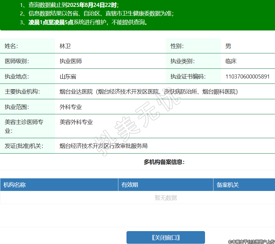 姓名:林衛(wèi)性別:男醫(yī)師級別:執(zhí)業(yè)醫(yī)師執(zhí)業(yè)類別:臨床執(zhí)業(yè)地點(diǎn):山東省執(zhí)業(yè)證書編碼:110370600005891主要執(zhí)業(yè)機(jī)構(gòu):煙臺業(yè)達(dá)醫(yī)院(煙臺經(jīng)濟(jì)技術(shù)開發(fā)區(qū)醫(yī)院、皮膚病防治所、煙臺眼科醫(yī)院)執(zhí)業(yè)范圍:外科專業(yè)美容主診醫(yī)師專業(yè):美容外科專業(yè)發(fā)證(批準(zhǔn))機(jī)關(guān):煙臺經(jīng)濟(jì)技術(shù)開發(fā)區(qū)行政審批服務(wù)局 -