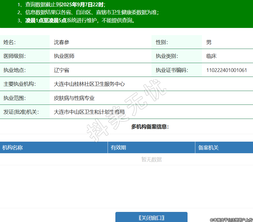 姓名:沈春參性別:男醫(yī)師級(jí)別:執(zhí)業(yè)醫(yī)師執(zhí)業(yè)類別:臨床執(zhí)業(yè)地點(diǎn):遼寧省執(zhí)業(yè)證書編碼:110222401001061主要執(zhí)業(yè)機(jī)構(gòu):大連中山桂林社區(qū)衛(wèi)生服務(wù)中心執(zhí)業(yè)范圍:皮膚病與性病專業(yè)發(fā)證(批準(zhǔn))機(jī)關(guān):大連市中山區(qū)衛(wèi)生和計(jì)劃生育局 -