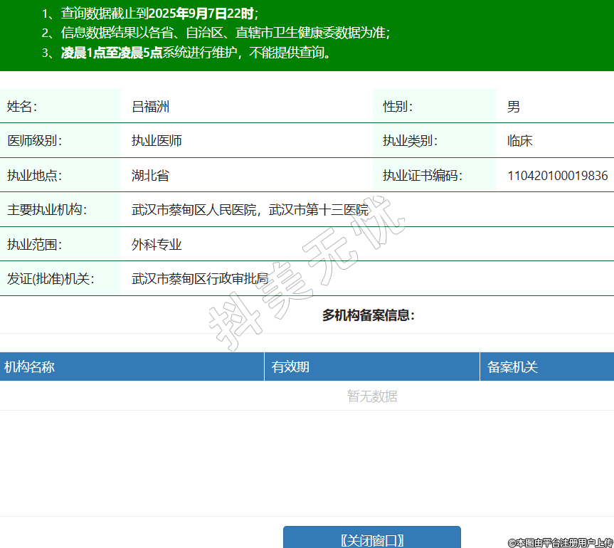 姓名:呂福洲性別:男醫(yī)師級別:執(zhí)業(yè)醫(yī)師執(zhí)業(yè)類別:臨床執(zhí)業(yè)地點:湖北省執(zhí)業(yè)證書編碼:110420100019836主要執(zhí)業(yè)機構(gòu):武漢市蔡甸區(qū)人民醫(yī)院,武漢市第十三醫(yī)院執(zhí)業(yè)范圍:外科專業(yè)發(fā)證(批準)機關(guān):武漢市蔡甸區(qū)行政審批局 -