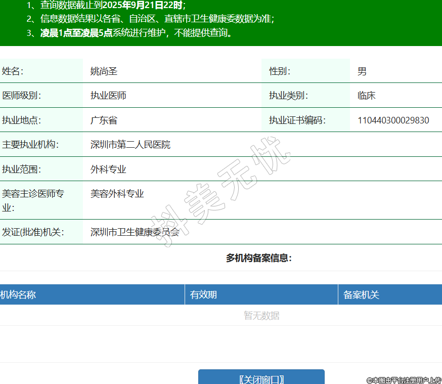 姓名:姚尚圣性別:男醫(yī)師級(jí)別:執(zhí)業(yè)醫(yī)師執(zhí)業(yè)類別:臨床執(zhí)業(yè)地點(diǎn):廣東省執(zhí)業(yè)證書編碼:110440300029830主要執(zhí)業(yè)機(jī)構(gòu):深圳市第二人民醫(yī)院執(zhí)業(yè)范圍:外科專業(yè)美容主診醫(yī)師專業(yè):美容外科專業(yè)發(fā)證(批準(zhǔn))機(jī)關(guān):深圳市衛(wèi)生健康委員會(huì) -