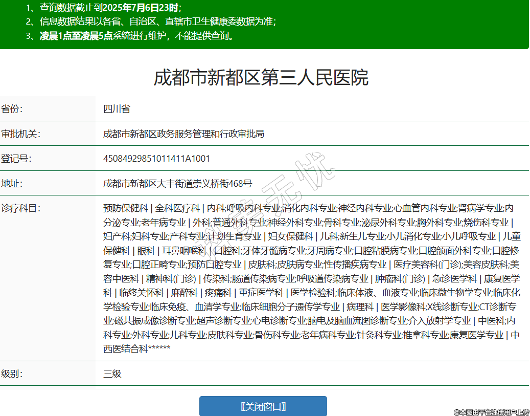 省份:四川省審批機關(guān):成都市新都區(qū)政務服務管理和行政審批局登記號:45084929851011411A1001地址:成都市新都區(qū)大豐街道崇義橋街468號診療科目:預防保健科 | 全科醫(yī)療科 | 內(nèi)科;呼吸內(nèi)科專業(yè);消化內(nèi)科專業(yè);神經(jīng)內(nèi)科專業(yè);心血管內(nèi)科專業(yè);腎病學專業(yè);內(nèi)分泌專業(yè);老年病專業(yè) | 外科;普通外科專業(yè);神經(jīng)外科專業(yè);骨科專業(yè);泌尿外科專業(yè);胸外科專業(yè);燒傷科專業(yè) | 婦產(chǎn)科;婦科專業(yè);產(chǎn)科專業(yè);計劃生育專業(yè) | 婦女保健科 | 兒科;新生兒專業(yè);小兒消化專業(yè);小兒呼吸專業(yè) | 兒童保健科 | 眼科 | 耳鼻咽喉科 | 口腔科;牙體牙髓病專業(yè);牙周病專業(yè);口腔粘膜病專業(yè);口腔頜面外科專業(yè);口腔修復專業(yè);口腔正畸專業(yè);預防口腔專業(yè) | 皮膚科;皮膚病專業(yè);性傳播疾病專業(yè) | 醫(yī)療美容科(門診);美容皮膚科;美容中醫(yī)科 | 精神科(門診) | 傳染科;腸道傳染病專業(yè);呼吸道傳染病專業(yè) | 腫瘤科(門診) | 急診醫(yī)學科 | 康復醫(yī)學科 | 臨終關(guān)懷科 | 麻醉科 | 疼痛科 | 重癥醫(yī)學科 | 醫(yī)學檢驗科;臨床體液、血液專業(yè);臨床微生物學專業(yè);臨床化學檢驗專業(yè);臨床免疫、血清學專業(yè);臨床細胞分子遺傳學專業(yè) | 病理科 | 醫(yī)學影像科;X線診斷專業(yè);CT診斷專業(yè);磁共振成像診斷專業(yè);超聲診斷專業(yè);心電診斷專業(yè);腦電及腦血流圖診斷專業(yè);介入放射學專業(yè) | 中醫(yī)科;內(nèi)科專業(yè);外科專業(yè);兒科專業(yè);皮膚科專業(yè);骨傷科專業(yè);老年病科專業(yè);針灸科專業(yè);推拿科專業(yè);康復醫(yī)學專業(yè) | 中西醫(yī)結(jié)合科******級別:三級法定代表人:金健主要負責人:金健執(zhí)業(yè)許可證有效期:2017/12/27 -至- 2029/11/30 -