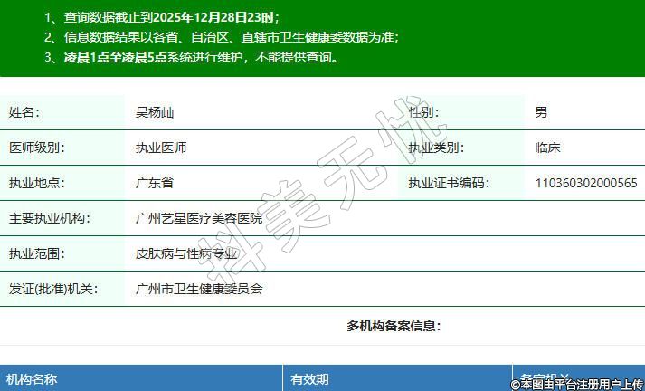 主要執(zhí)業(yè)機(jī)構(gòu):廣州藝星醫(yī)療美容醫(yī)院
