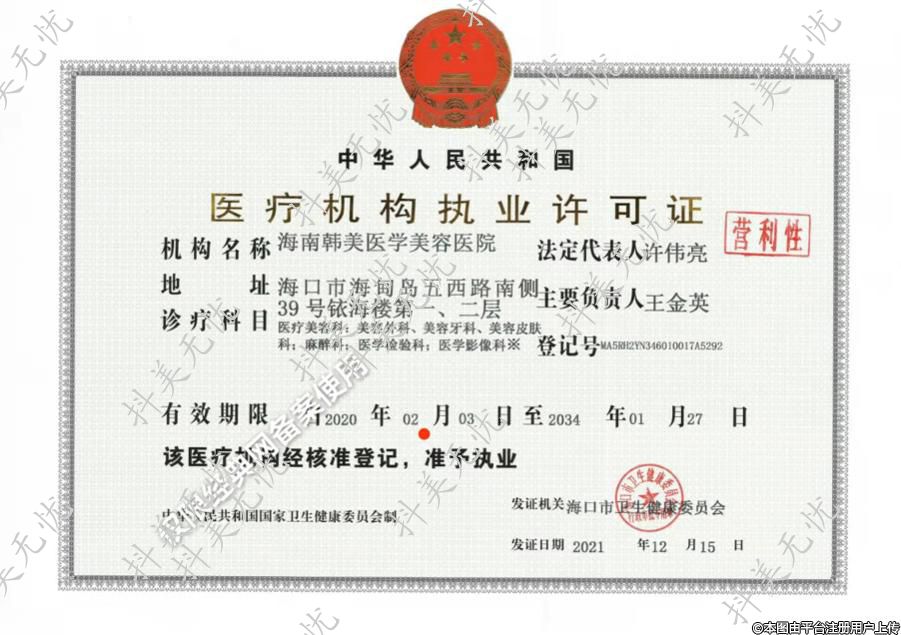機(jī)構(gòu)名稱:海南韓美醫(yī)學(xué)美容醫(yī)院