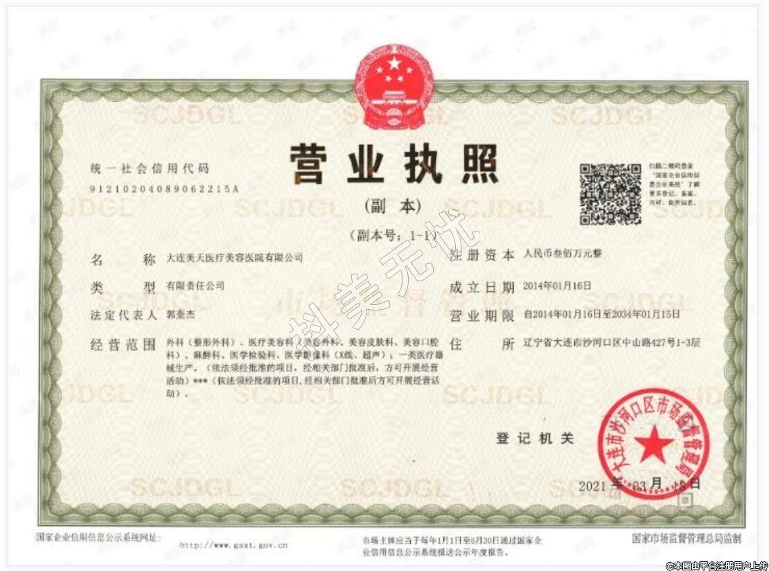 醫(yī)療機構(gòu)名稱:大連美天醫(yī)療美容醫(yī)院有限公司