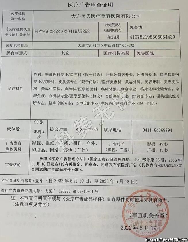 發(fā)證機關(guān):大連市沙河口區(qū)衛(wèi)生健康局