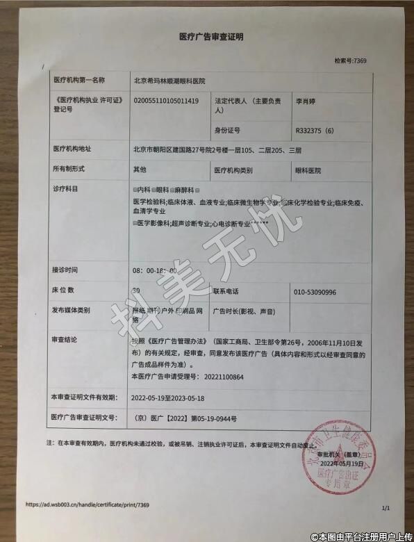 機構(gòu)名稱:北京希瑪林順潮眼科醫(yī)院