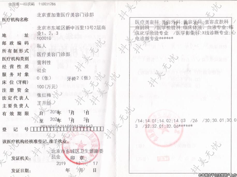 醫(yī)療機(jī)構(gòu)名稱:北京壹加壹醫(yī)療美容門診部