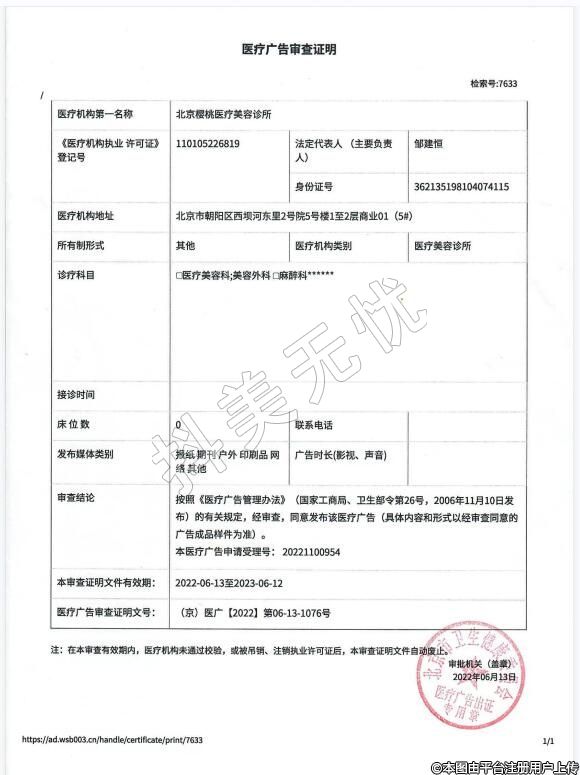 發(fā)證機(jī)關(guān):北京市朝陽區(qū)衛(wèi)生健康委員會