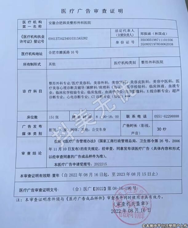 醫(yī)療機(jī)構(gòu)名稱:安徽合肥韓美整形外科醫(yī)院