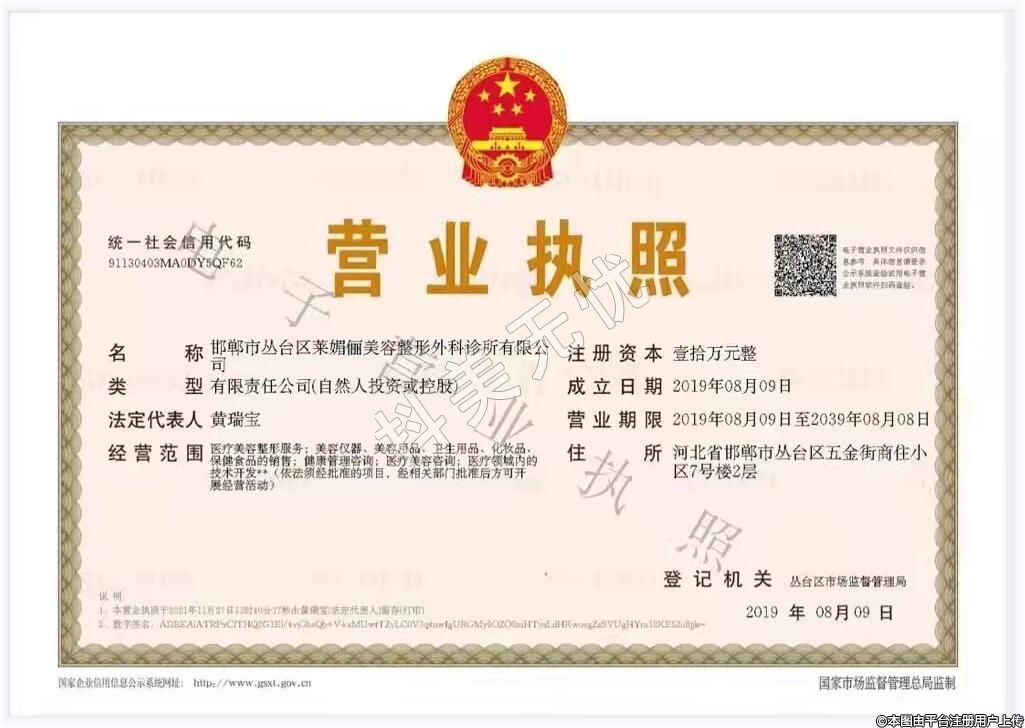 發(fā)證機關(guān):邯鄲市叢臺區(qū)行政審批局