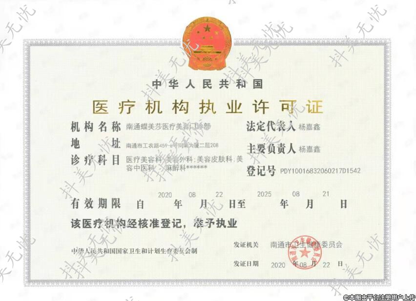 機構名稱:南通蝶美莎醫(yī)療美容門診部