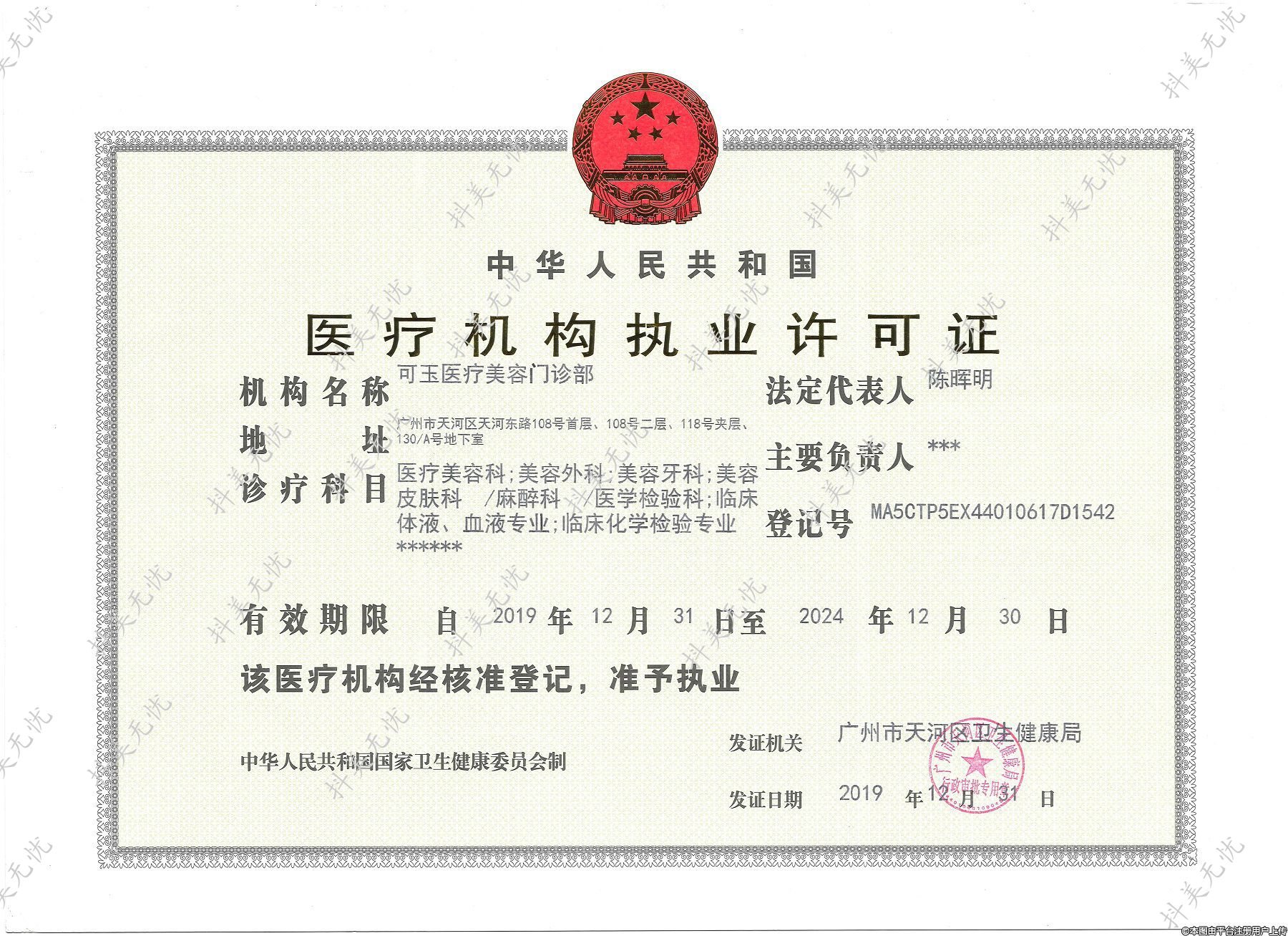 發(fā)證機關:廣州市天河區(qū)衛(wèi)生健康局