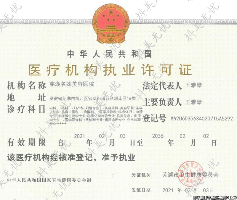 發(fā)證機(jī)關(guān):蕪湖市重生健康委員會