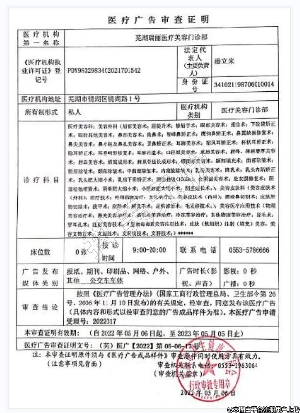 發(fā)證機關(guān):蕪湖市鏡湖區(qū)衛(wèi)生健康委員會