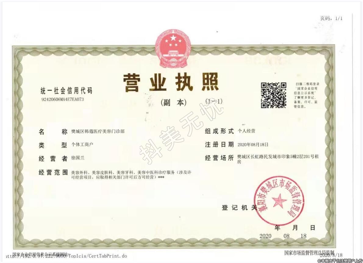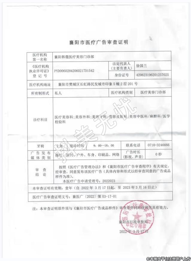 醫(yī)療機構名稱:襄陽韓蔻醫(yī)療美容門診部