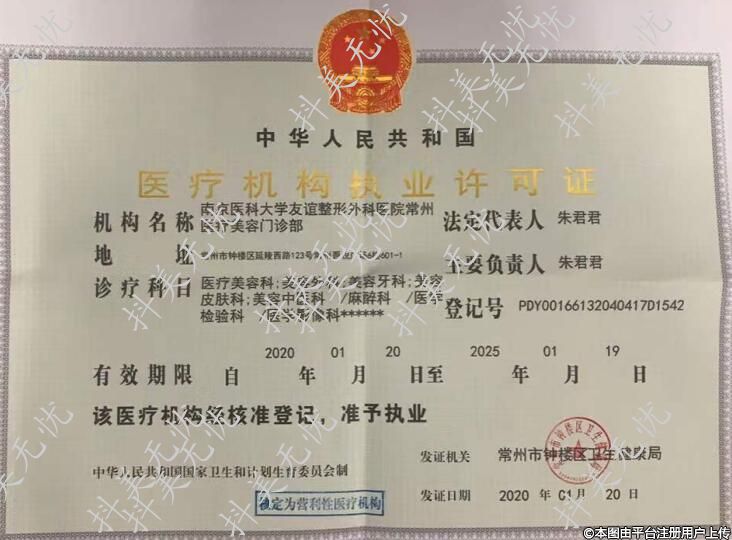 機(jī)構(gòu)名稱(chēng):南京醫(yī)科大學(xué)友誼整形外科醫(yī)院常州醫(yī)療美容門(mén)診部