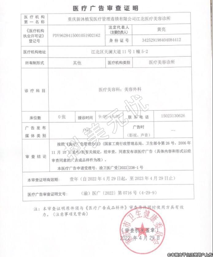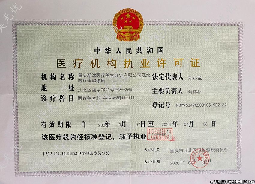 醫(yī)療機(jī)構(gòu)名稱(chēng):重慶新沐醫(yī)療美容連鎖有限公司江北醫(yī)療美容診所