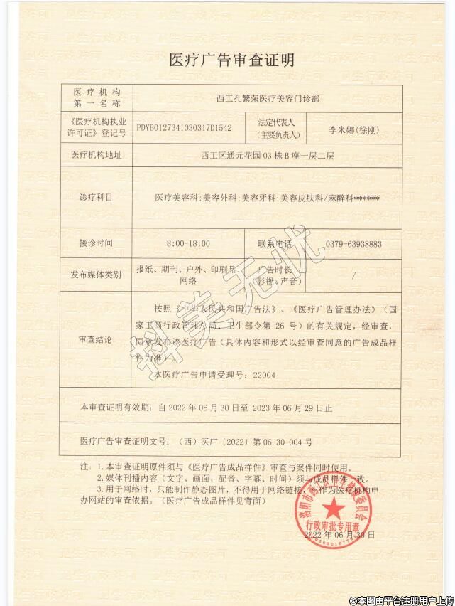 發(fā)證機(jī)關(guān):洛陽市西工區(qū)衛(wèi)生健康委員會(huì)